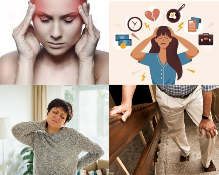 - Muscle stiffness and Soreness (Neck, Shoulders, Back, Legs etc.)